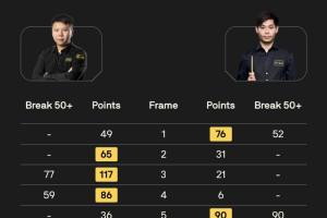 体育资讯03月16日讯 2026斯诺克世界公开赛在江西玉山举行,第一比赛日14点场次比分结果如下。