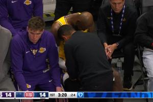 GIF-詹姆斯戳到了小拇指 下场治疗了
